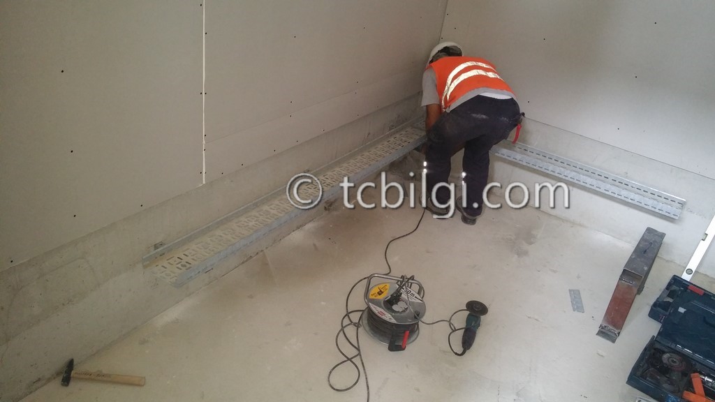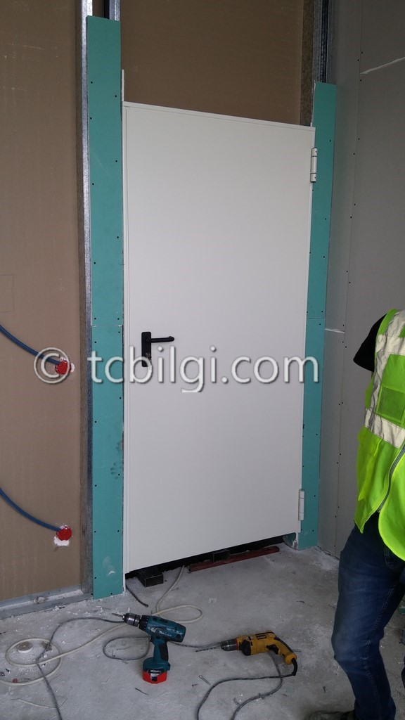 Sistem odası için yanmaz alçıpandan duvar uygulaması, kablolama için tava uygulaması, yükseltilmiş döşeme uygulaması, yangın algılama ve gazlısöndürme uygulaması, yangına dayanıklı kapı uygulaması, sistem odasına giriş için parmak izi cihazına ait örnek bir çalışma.